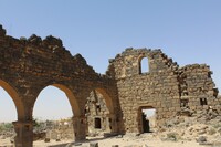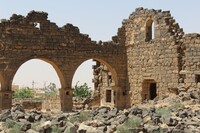 Jordan. Umm al Jimal, the West Church, detail of arch
