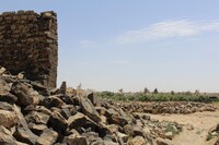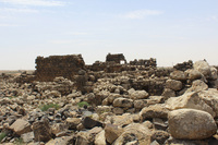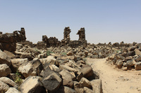 Jordan. Umm al Jimal, on the right is the south hall of the Double Church, the area on the left is part of House 104