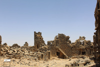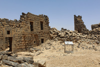 Jordan. Umm al Jimal, interpretive sign outside House 103 and the Double Church