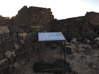 Jordan. Umm al Jimal, interpretive sign for Barracks