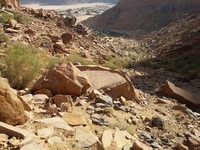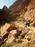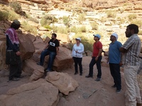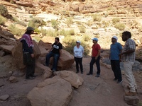 Jordan. Wadi Rum, path to Ain Shallaleh, SCHEP and USAID teams, Glenn Corbett of ACOR, Mohammed Domyan of the Wadi Rum Protected Area