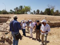 Jordan. Aqaba (Ayla), Islam Sleim (left), site steward Mustafa Ajlouni (right), USAID team members checking the progress of site development work at Ayla