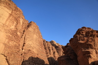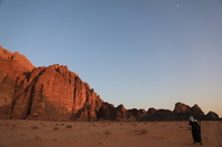 Jordan. Wadi Rum, moonlight with mountain to the side