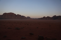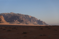 Jordan. Wadi Rum, general view of desert with mountains in background