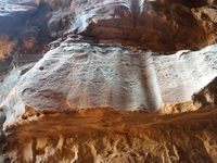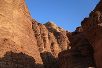 Jordan. Wadi Rum, Al Khazali mountain, rock art inside the canyon (a narrow fissue that cuts Jabal Khazali)