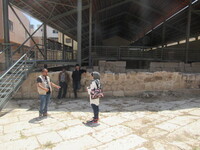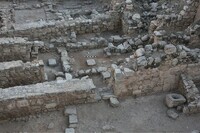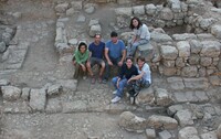 Jordan. Madaba, Madaba Archaeological Park West, students on the 2016 team sitting in the cleared remains of Building 1 in the late 19th-century settlement, looking west