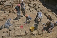 Jordan. Madaba, Madaba Archaeological Park West, 2016 participants excavating in Building 1 of the late 19th-century settlement, looking north