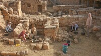 Jordan. Madaba, Madaba Archaeological Park West, 2016 team members excavating in Building 2 of the late 19th-century settlement, looking west