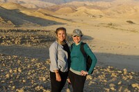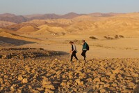 Jordan. Wadi Araba, Bir Madhkur, Sofia Smith and Maria Trogolo of USAID SCHEP walking on ad-Dlayi path, ancient incense route