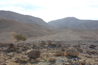 Jordan. Wadi Araba, Bir Madhkur, Site Steward Mohammad Saedeen on the border line between Khirbat Bir Madhkur and modern Islamic cemeteries