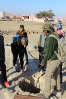 Jordan. Wadi Araba, Bir Madhkur, visitors looking into a well six meters deep, which locals still use