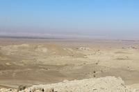 Jordan. Wadi Araba, Bir Madhkur, Wadi Al Makhfar from the northeast of the police station, with Al-Sharat mountains in the background
