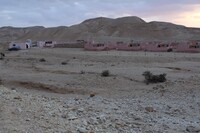 Jordan. Wadi Araba, Bir Madhkur, general view of tourist cabins near ad-Dlayi path, ancient incense route