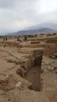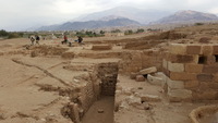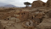 Jordan. Ghawr as Safi, lower area in front (north) of the sugar presses. Sugar juice conduit on the right of photo, leading to the sugar processing (boiling and curing) area in the background at sugar factory (Masna’ as-Sukkar), SCHEP team