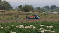 Jordan. Ghawr as Safi, agricultural fields near Khirbet Sheik Isa, local residents, goats