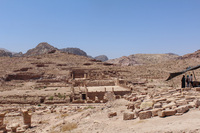 Jordan. Petra, Temple of the Winged Lions, lapidarium (architectural stone garden), Great Temple in background
