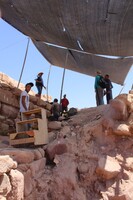 Jordan. Petra, Temple of the Winged Lions, team members in a sifting station