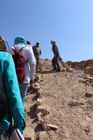 Jordan. Petra, Temple of the Winged Lions, visitors on path, Jehad Haron and Glenn Corbett in background, team members