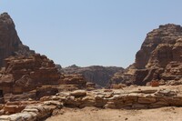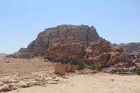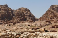 Jordan. Petra, Temple of the Winged Lions, Qasr al Bint as seen from TWL, with the old museum to the right