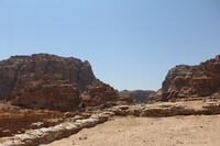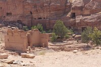 Jordan. Petra, Temple of the Winged Lions, lapidarium, pathway, Great Temple in background