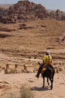 Jordan. Petra, Temple of the Winged Lions, local community member on donkey