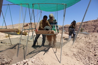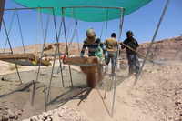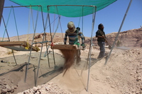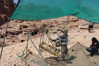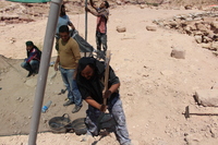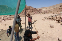 Jordan. Petra, Temple of the Winged Lions, sifting station, team members