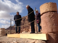 Jordan. Petra, Temple of the Winged Lions, north of lapidarium, Elena Ronza and Mohammad Shobaki with Ghassan Al Deir of the Dept. of Antiquities