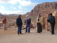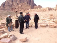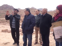 Jordan. Petra, Temple of the Winged Lions, Director General of the Dept. of Antiquities Dr. Monther Jamhawi with Jehad Haron, Elena Ronza, and Sana Al Hamadeen and Ghassan Al Deir of the Dept. of Antiquities