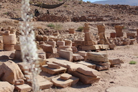 Jordan. Petra, Temple of the Winged Lions, lapidarium with asphodel flower in foreground