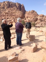 Jordan. Petra, Temple of the Winged Lions, Director General of the Dept. of Antiquities Dr. Monther Jamhawi with Elena Ronza and Mohammad Shobaki