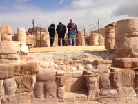 Jordan. Petra, Temple of the Winged Lions, Bassam Alfaqeer, Ahmad Mowasa, Shaka Alfaqeer, John (Jack) Green, Miriam Saleh, truck full of signs about to be installed
