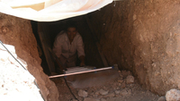 Jordan. Umm al Jimal, Dr. Monther Jamhawi, Prince Ra'ad bin Zeid, and other visitors at groundbreaking ceremony for the opening of the Interpretive and Hospitality Center
