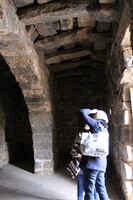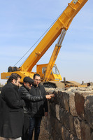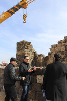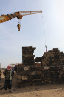 Jordan. Umm al Jimal, crane for restoration activities, Commodus Gate, Nizar Al Adarbeh, Jehad Haron, visitor