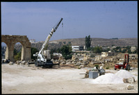 Jerash - heavy equipment at Hippodrome reconstruction during restoration work