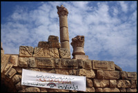 Jerash - Banner for 15th annual Jerash Festival "entitled Fashion from Jordan"
