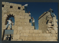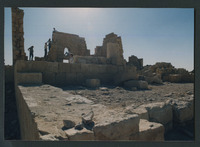 Qasr al-Hallabat - ruined blocks with inscriptions