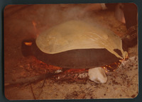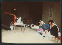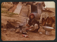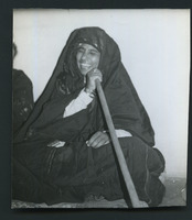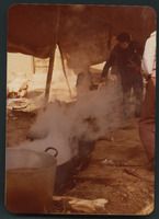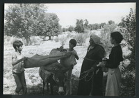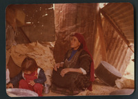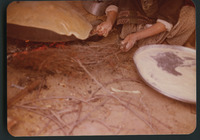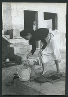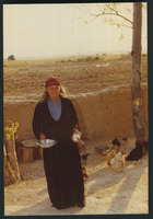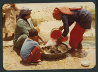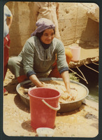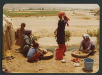 Mrs. Abu Ghonmi pounding coffee in a mortar shell