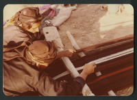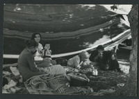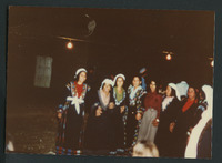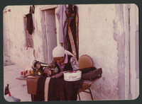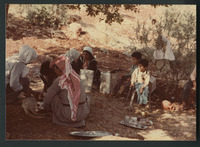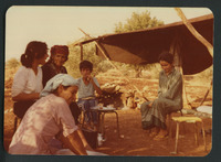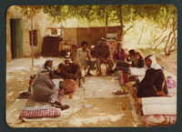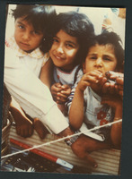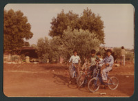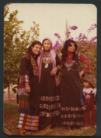 Nada, Munira, and Outfa modeling dresses embroided by their sister, Nourra in the family's garden