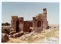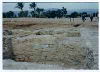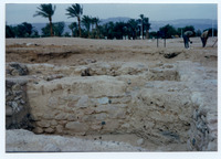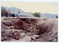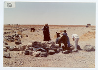 Jordan. Fr. Michele Piccirillo showing Her Majesty Queen Noor a model of the Roman street complex