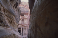 Jordan. Petra, View of Khaznet Far'oun (The Treasury) from the Siq