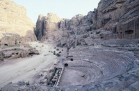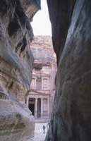 Jordan. Petra, View of Khaznet Far'oun (The Treasury) from the Siq