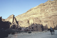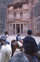 Jordan. Petra, Khaznet Far'oun (The Treasury) with horse riders