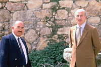 Jordan. Amman Citadel, Jabal Al Qala'a, during reconstruction of Temple of Hercules. Jordanian architect Ammar Khammash (left) and Chrysanthos Kanellopoulos (right)
