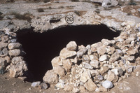 Jordan. Khirbat Al Makhayyat, looking Northeast, close up view of burial cave