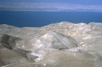Jordan. Machaerus (Mukawir/Qal‘at al-Mishnaqa), looking West, general view of site (with Dead Sea in background)