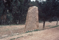 Jordan. Khirbat Iskandar, looking East, close up view of ca. 3m high standing stone (opposite Khirbet Iskander on South bank of Wadi Wala)
