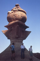 Jordan. Wadi Rum Temple, Looking Northwest - close up view of Temple with person