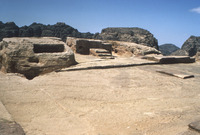 Jordan. Petra, Looking West - close up view of High Place of Sacrifice with round altar and main altar