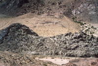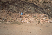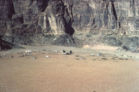 Jordan. Wadi Rum Temple, Looking West - general view of Temple Site (against cliff)