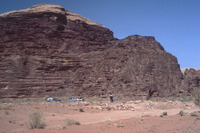 Jordan. Wadi Rum Temple, Looking West - general view of Region (temple site right, center, against cliff)